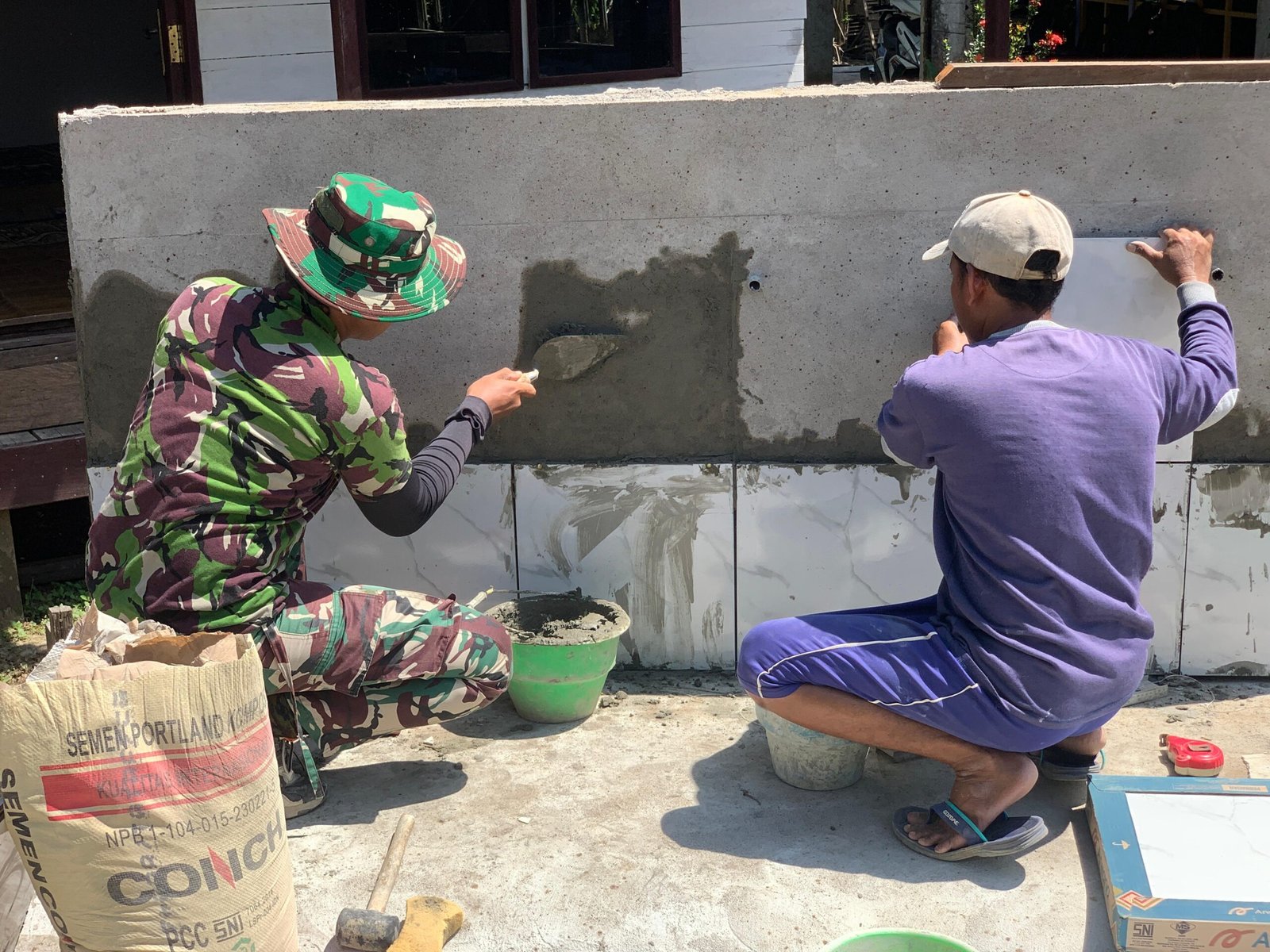 Satgas TMMD Kodim 1012/Buntok Pasang Keramik Tempat Wudhu di Desa Talio