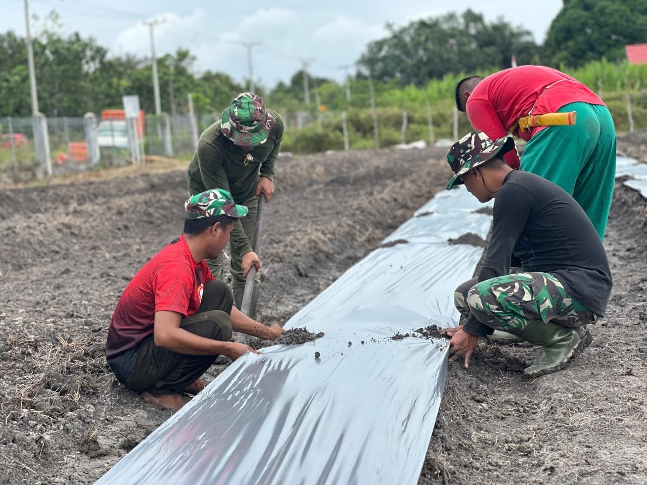 Satgas TMMD Kodim 1012/Buntok Pasang Mulsa Plastik untuk Dukung Ketahanan Pangan