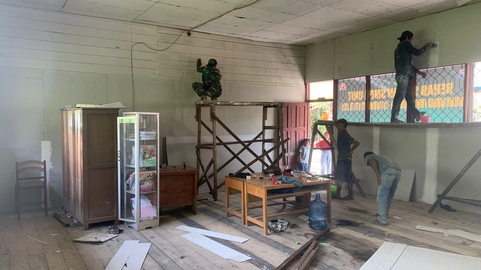 Satgas TMMD Kodim 1012/Buntok Perbaiki Fasilitas Pendidikan dengan Pasang Plafon di SDN 4 Karau Kuala
