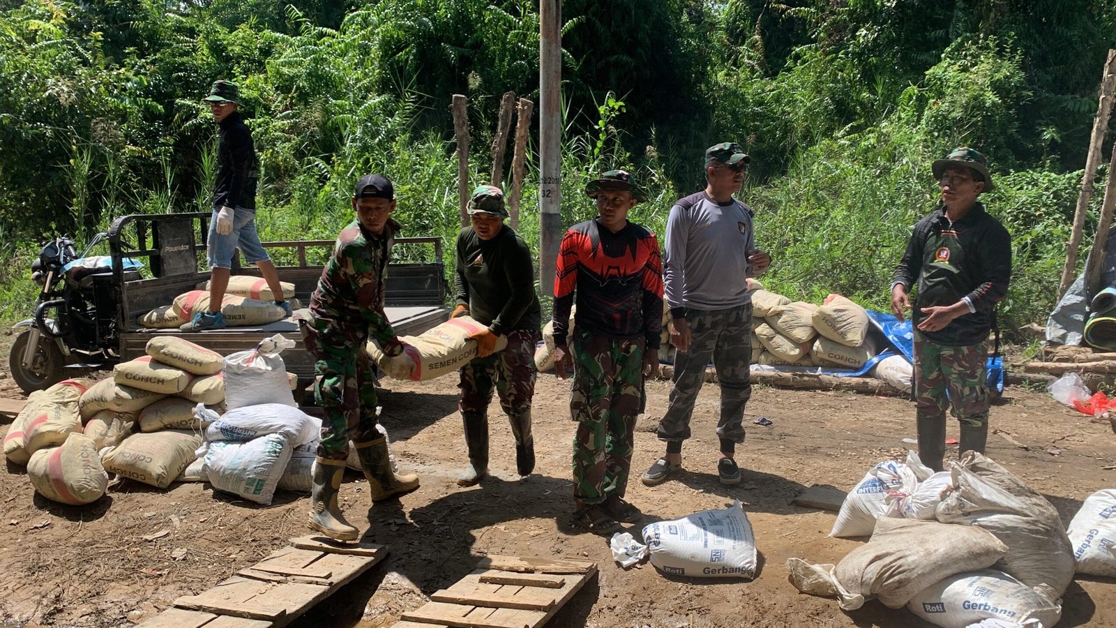 Satgas TMMD Kodim 1012/Buntok Salurkan Semen ke Pembangunan Jalan Desa Talio