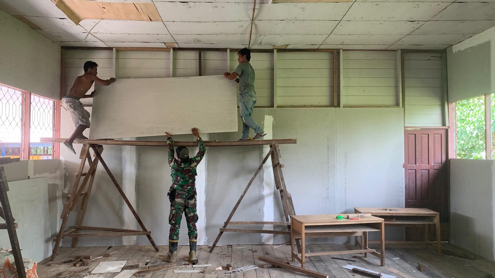 Satgas TMMD Kodim 1012/Buntok Tingkatkan Fasilitas Pendidikan dengan Pemasangan Plafon di SDN 4 Karau Kuala