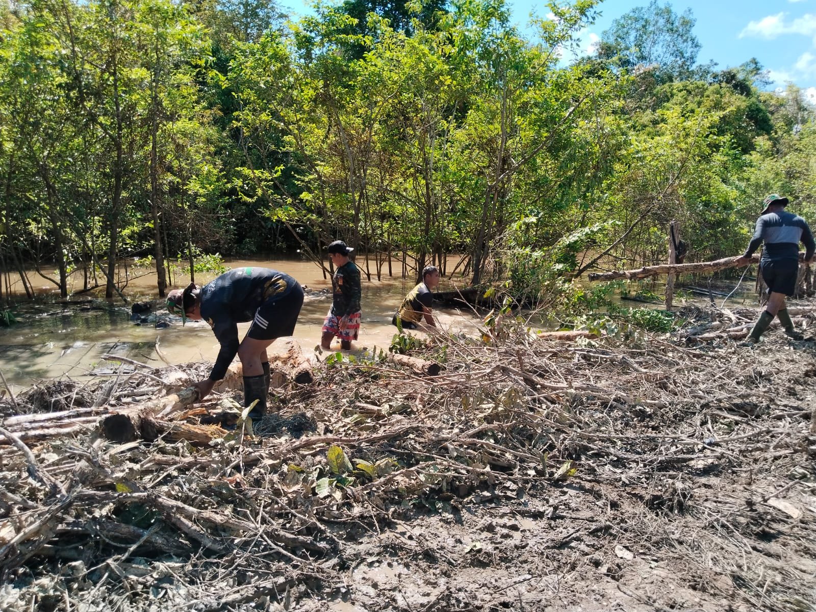 Meskipun medan berat dan cuaca terkadang kurang bersahabat, semangat pantang menyerah para anggota Satgas tidak surut. Mereka bekerja secara gotong royong bersama warga untuk membawa cerucuk ke titik-titik pemasangan dengan penuh dedikasi.