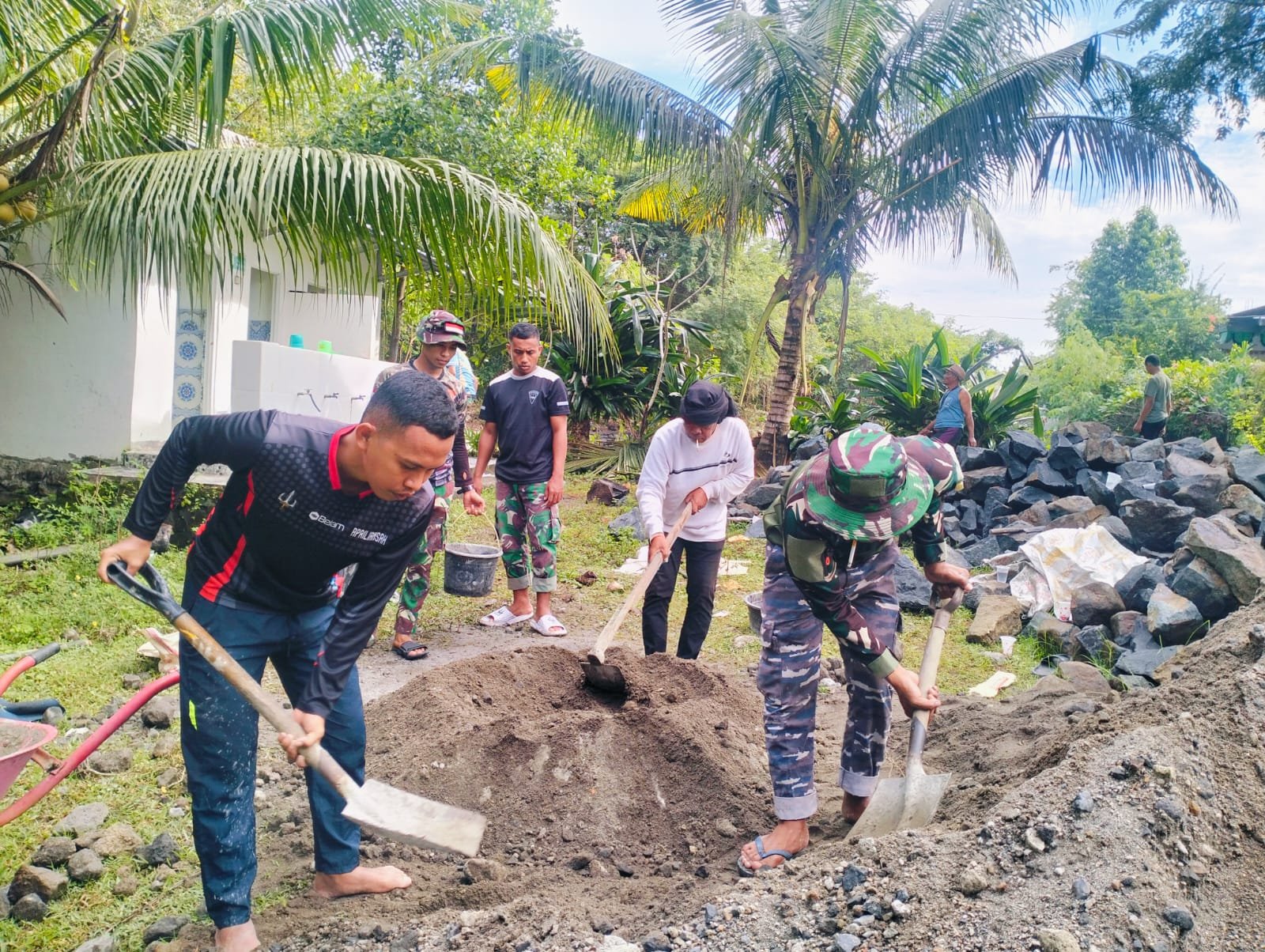 Lombok Tengah, 24 Mei 2025 — Semangat kebersamaan dan gotong royong tampak nyata dalam kegiatan TNI Manunggal Membangun Desa (TMMD) ke-120 yang digelar oleh Kodim 1620/Lombok Tengah (Loteng). Satgas TMMD bersama masyarakat desa setempat bahu-membahu melaksanakan pembangunan infrastruktur demi meningkatkan kesejahteraan dan aksesibilitas warga.