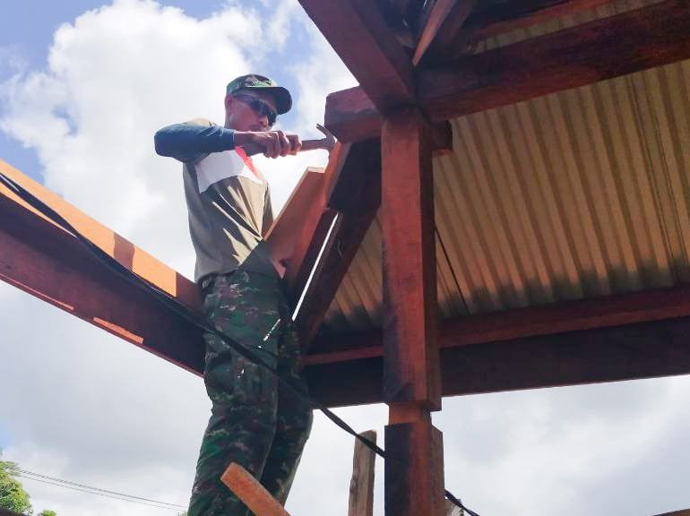 “Saat ini kami mulai pasang dinding dan atap seng untuk tiga rumah. Harapannya, pemasangan ini dapat selesai dalam dua hari ke depan. Kami bekerja dengan penuh semangat agar bisa selesai tepat waktu,” ujar Pelda Edi.