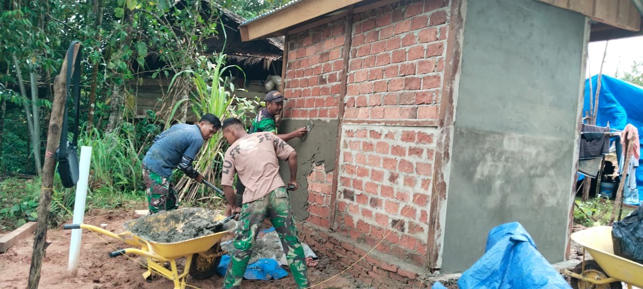 Satgas TMMD Kodim 1711/Boven Digoel Kebut Pekerjaan Plester Dinding MCK di Kampung Waropko