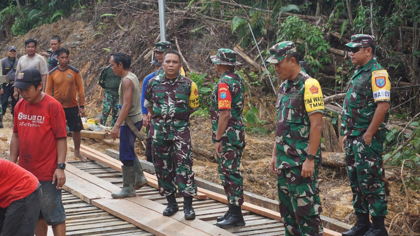 Tim Wasev yang dipimpin oleh Kolonel CPT Moh. Khoirul Hadi serta di dampingi oleh Kasrem 121/Abw Kolonel Inf Mohamad Isnaeni, S.E., M.M., yang disambut langsung oleh Dandim 1206/Putussibau Letkol Inf Nasli, S. Sos., selaku Dansatgas beserta Kepala Dinas PUPR tokoh masyarakat setempat.