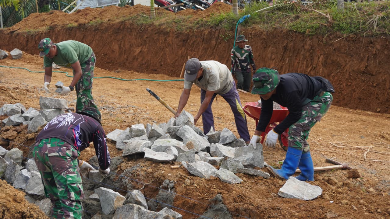 Dalam pelaksanaan kegiatan, anggota Satgas dan warga membagi tugas, di mana sebagian mengangkat batu belah sementara yang lain menyiapkan adukan semen untuk proses pemasangan siring. Kekompakan ini mencerminkan sinergi yang kuat antara TNI dan masyarakat.