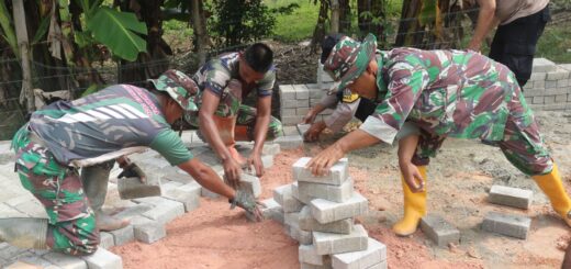 “Satgas TMMD bersama warga mengangkut material batu belah secara bergotong royong untuk dibawa ke lokasi pemasangan siring pondasi,” ungkap Kapten Inf Sujarwo.