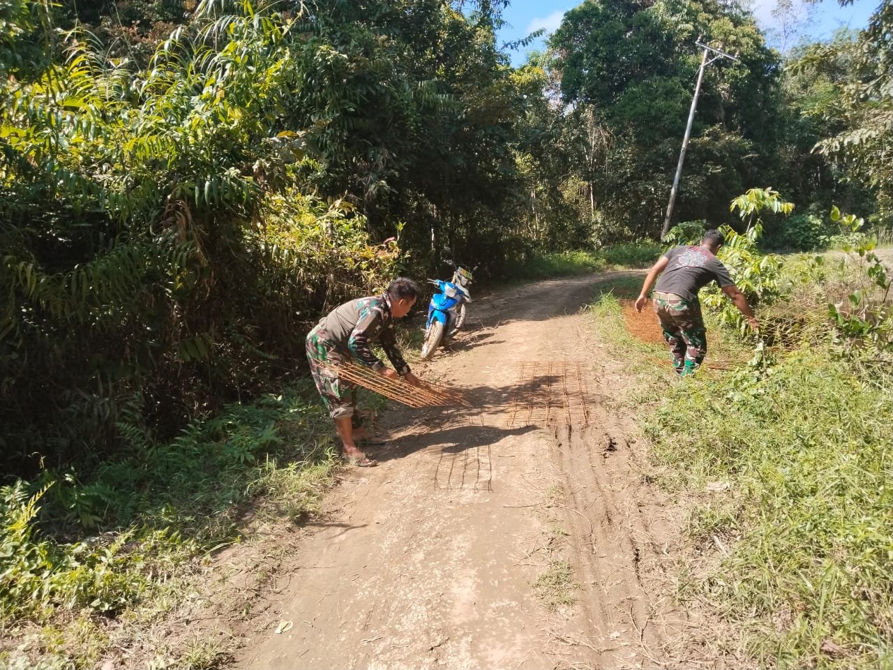 Dalam kegiatan hari ini, anggota Satgas fokus pada tahap penataan struktur besi cor yang akan menjadi tulang punggung betonisasi jalan. Proses ini dilakukan secara manual dan dengan bantuan alat berat di beberapa titik.
