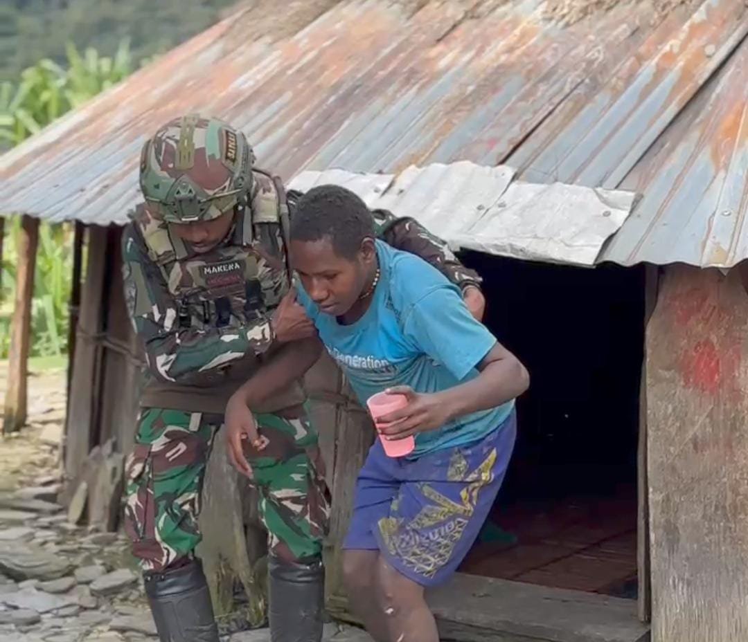 Puncak Jaya, Papua – Di tanah yang dilingkupi kabut dan jalan-jalan berbukit, langkah kaki para Prajurit Satgas Yonif 743/PSY Pos Talilime kembali menorehkan kisah kemanusiaan. Dengan semangat tulus tanpa pamrih, personel kesehatan Pos menempuh perjalanan sejauh 5 kilometer menuju Kampung Talilime untuk memberikan pertolongan medis kepada Mama Atniwa Wanimbo dan anaknya yang tengah terbaring sakit di Kampung Talilime, Distrik Mulia, Kabupaten Puncak Jaya, Papua, Rabu (01/10/2025).