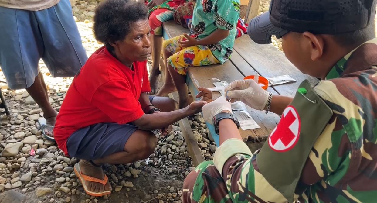 Satgas Yonif 751/VJS Adakan Pengobatan Gratis di Kampung Beringin dan Kalomdol