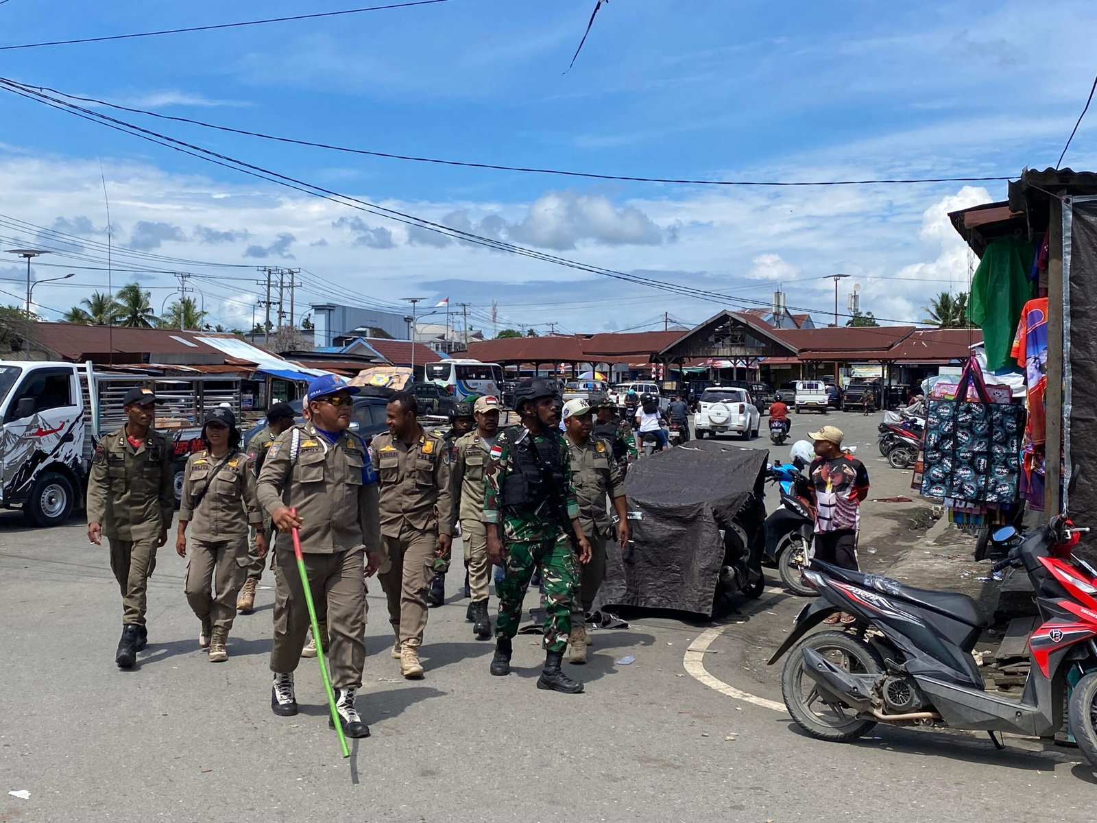 Nabire – Kodim 1705/Nabire bersama Pemerintah Daerah (Pemda) Kabupaten Nabire melalui Satpol PP melaksanakan patroli siang di sejumlah titik di wilayah Kabupaten Nabire