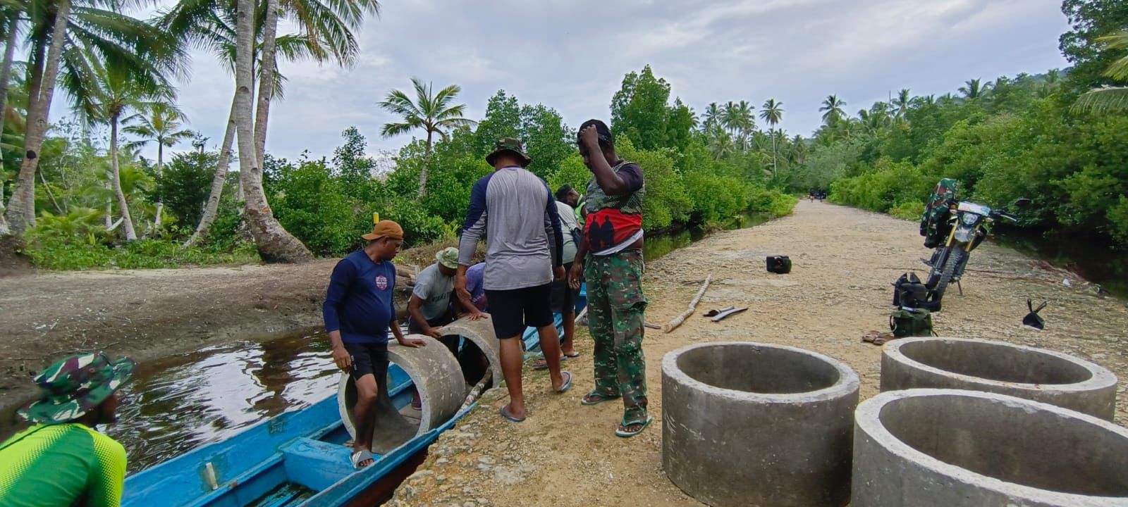 Semangat Gotong Royong Dalam Pemindahan Material Sumur Bor TMMD 127 di Kampung Sisir 2