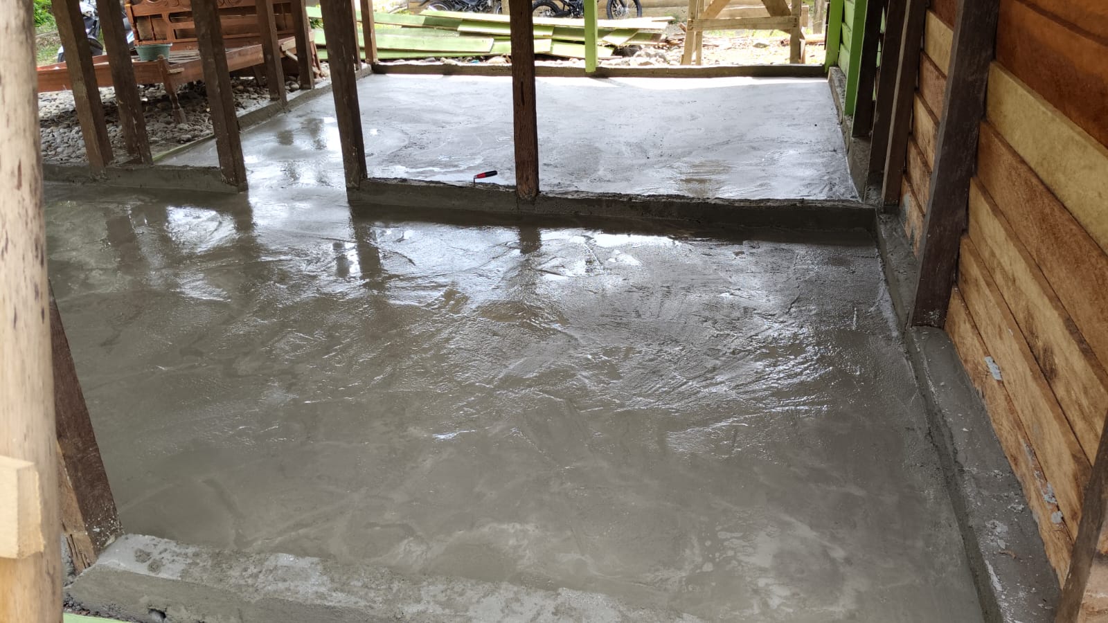 Tahapan pembangunan di sasaran RTLH titik kedua kini memasuki pengecoran lantai. Tanah yang sebelumnya menjadi alas kini diperkuat agar penghuni rumah merasakan kenyamanan lebih baik. Meski berbentuk rumah kayu, perhatian terhadap kualitas tetap menjadi prioritas, Minggu (1/3/2026).