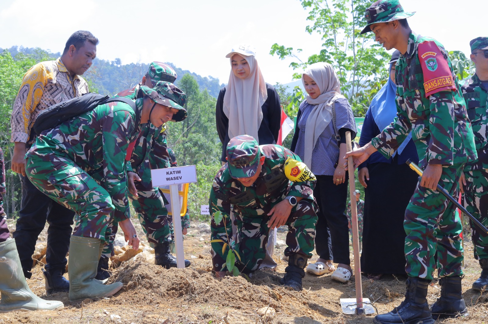 NAGAN RAYA – Suasana hangat penuh kebersamaan terlihat di lokasi pelaksanaan TMMD Ke-127 Kodim 0116/Nagan Raya, ketika sejumlah prajurit TNI bersama warga dan tamu undangan menanam bibit pohon di area kegiatan.