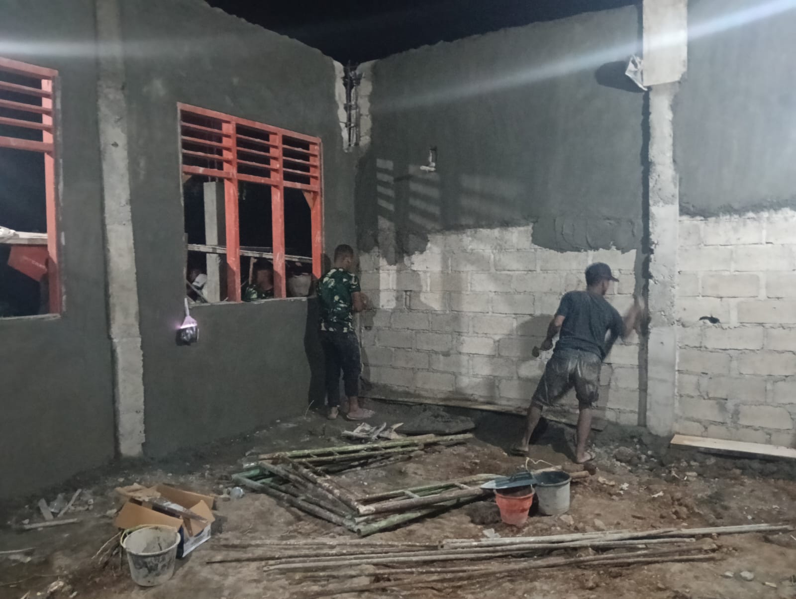 Kefamenanu, NTT – Pada Senin malam, 23 Februari 2026, dalam suasana tenang desa Sunkaen, personel Satgas TMMD Ke-127 Kodim 1618/TTU menunjukkan dedikasi mereka dengan melanjutkan pengerjaan plester tembok bagian dalam empat ruang kelas di SMAN Bikomi Nilulat. Dengan cahaya lampu yang menerangi, para prajurit bekerja lembur untuk memastikan percepatan pembangunan berjalan optimal.