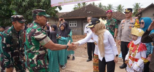 Seorang prajurit dari Kodim 0421/Lampung Selatan menggenggam erat pegangan angkong tersebut, otot lengannya tampak menegang. Roda angkong berderit saat bergerak di atas tanah yang belum sepenuhnya rata. Dengan segala tenaga, dia mendorong angkong itu, meski napasnya memburu, langkahnya tetap mantap.