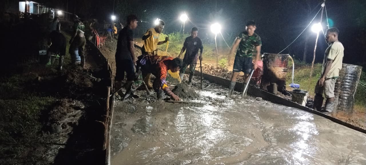 Semangat Tanpa Lelah, Satgas TMMD ke-126 Bekerja Hingga Larut Malam di Kampung Waropko