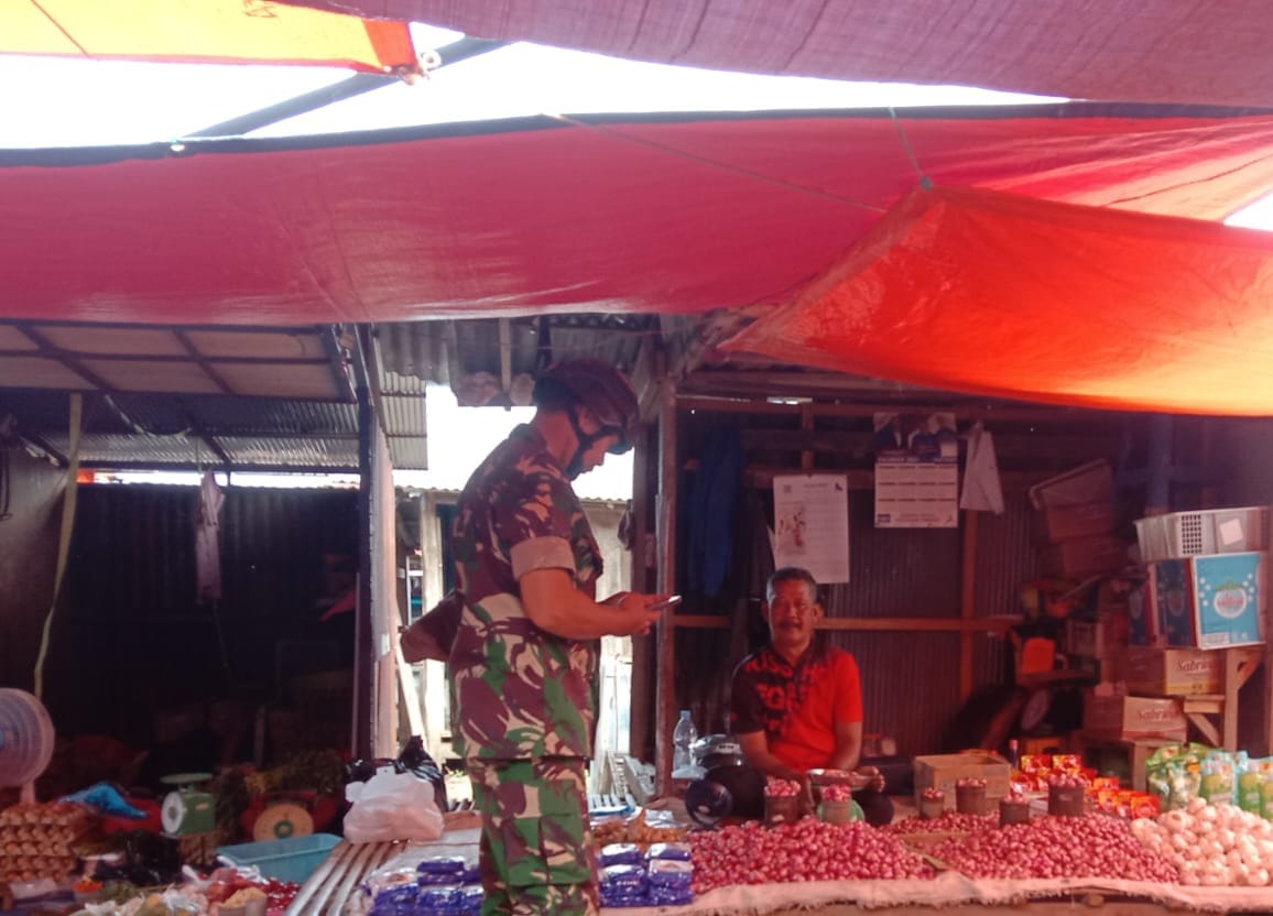 Sertu Isman dari Koramil 01/Panca Lautang Lakukan Pengecekan Harga Sembako di Pasar Sentral Bilokka