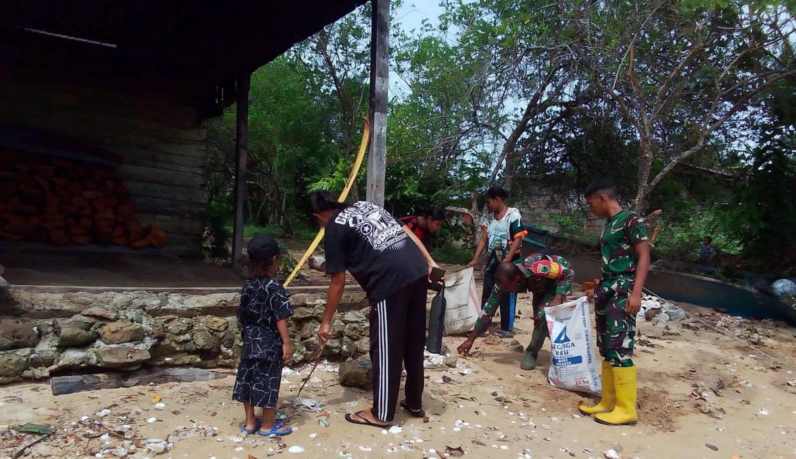 Sinergi TNI dan Masyarakat Bersihkan Pantai Kampung Sisir