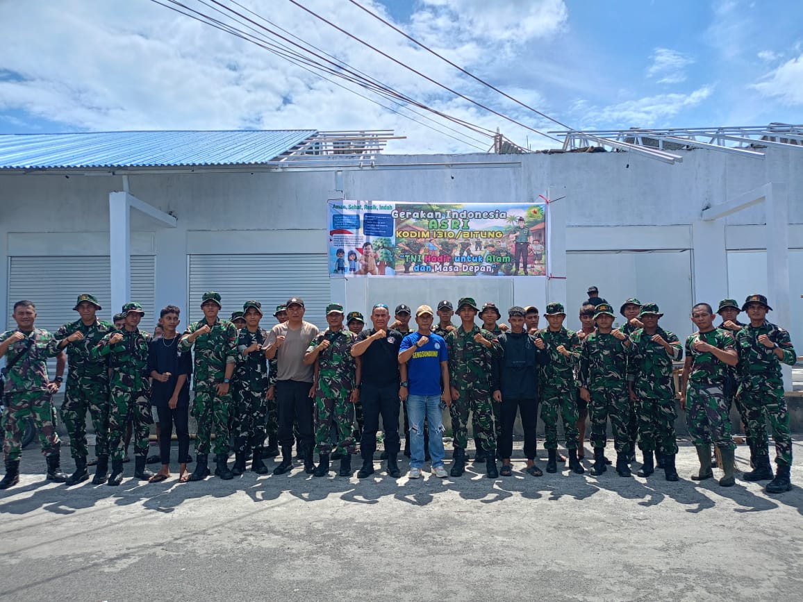 BITUNG – Dalam mendukung Gerakan Indonesia Asri, personel Kodim 1310/Bitung dan Yonif TP 916/Bara Sakti dari Kodam XIII/Merdeka melaksanakan kegiatan Karya Bakti untuk membersihkan lingkungan di Kompleks Kanopi, Kelurahan Bitung Timur, Kecamatan Maesa, Kota Bitung, pada Rabu (18/03/2026).