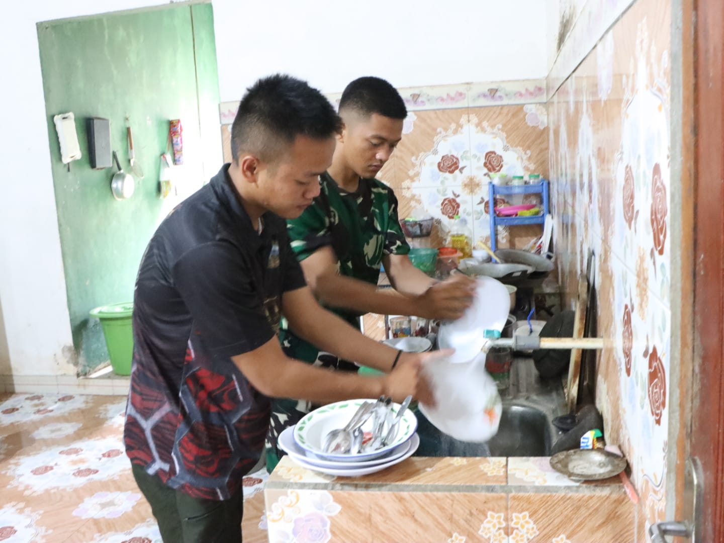 Sinergi TNI dan Masyarakat, Satgas TMMD 127 Bantu Tuan Rumah Bersihkan Peralatan Makan