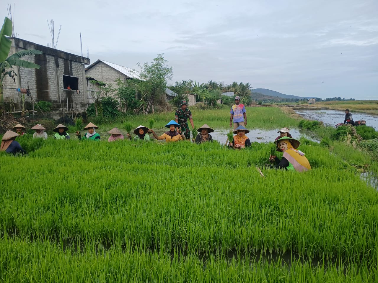 Sinergi TNI dan Petani: Dukungan Koramil dalam Menanam Padi di Nanga Baras