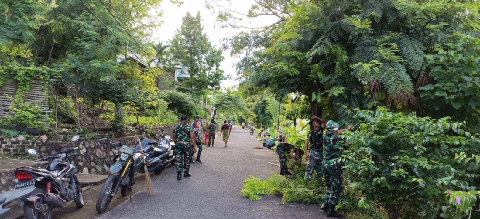 Kerja bakti berlangsung pada pagi hari, dimulai sekitar pukul 08.00 WIB. Sekitar 50 orang, terdiri dari prajurit TNI dan masyarakat, berkumpul untuk membersihkan jalan di desa dengan fokus pada penghilangan rumput liar, sampah, dan material lain yang menghalangi akses jalan.