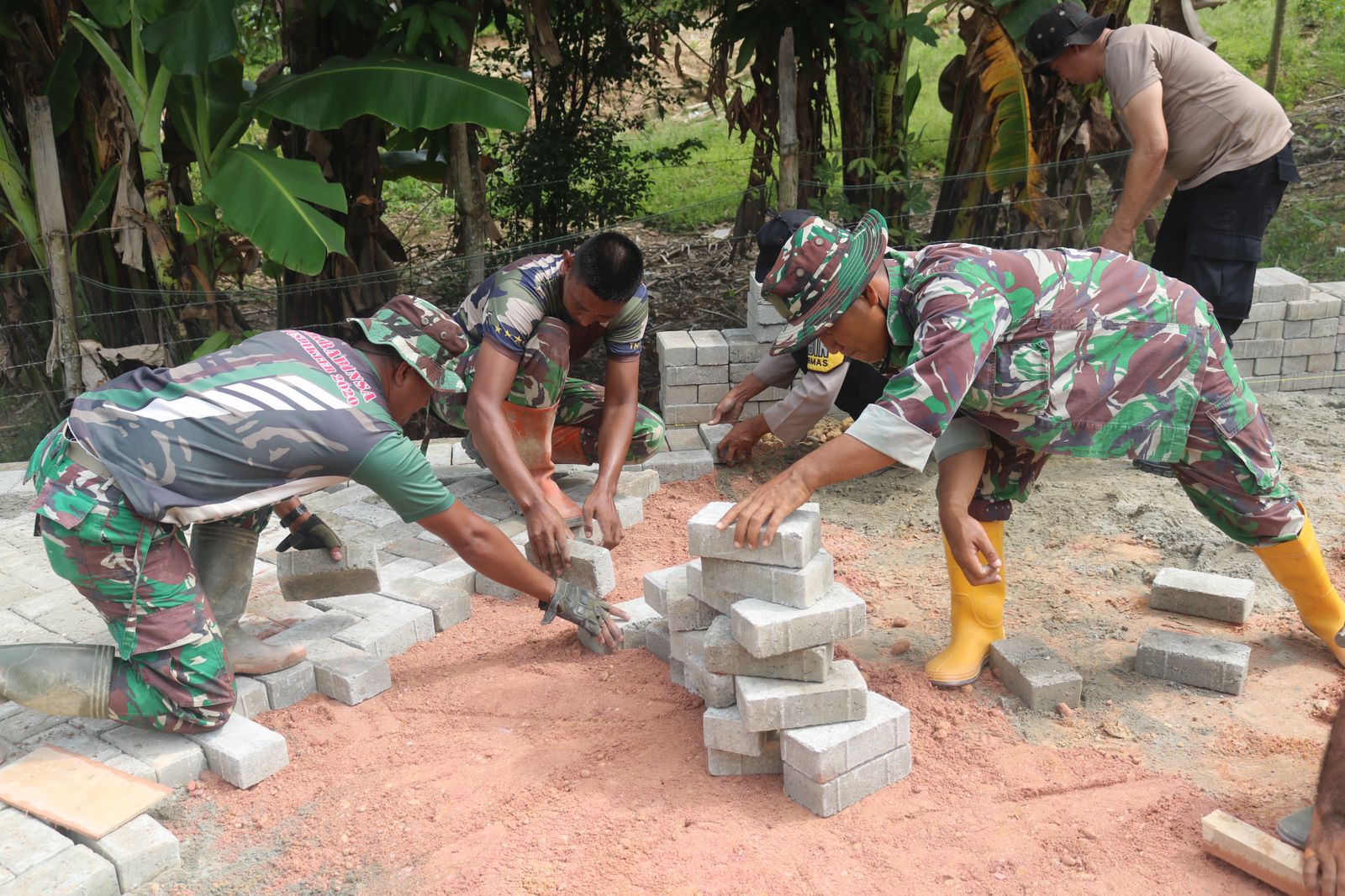 Kegiatan ini terlihat saat anggota kedua institusi secara bersinergi melakukan pemasangan paving blok guna menciptakan akses jalan yang lebih baik untuk masyarakat setempat.