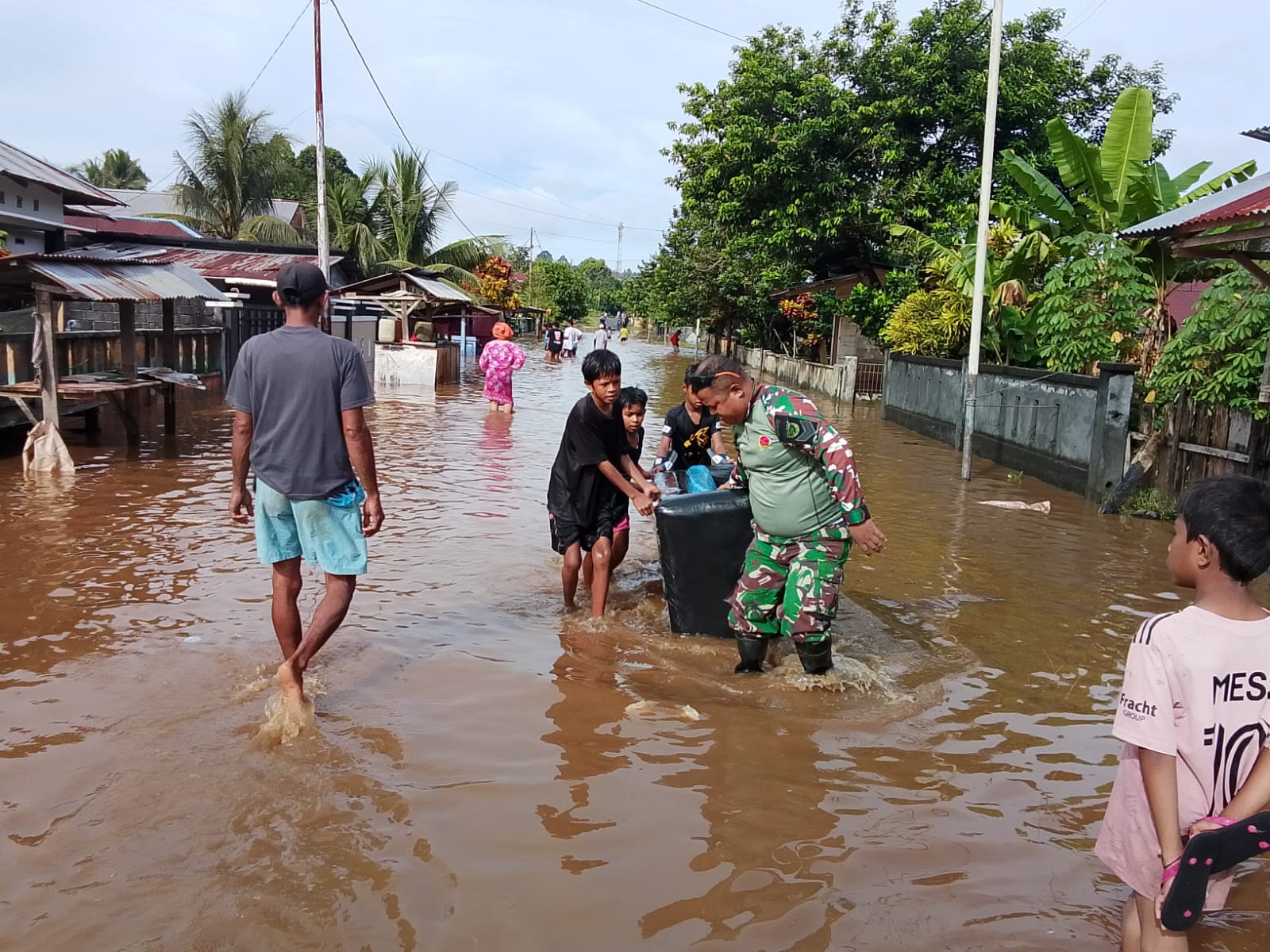 Halmahera Utara – Koramil 1508-02/Galela berkolaborasi dengan Polsek Galela, pemerintah desa, dan Dinas Badan Penanggulangan Bencana Daerah (BPBD) untuk menangani dampak banjir yang melanda Kecamatan Galela Selatan. Banjir tersebut terjadi akibat tingginya curah hujan yang berlangsung selama beberapa hari terakhir. Kegiatan ini dilaksanakan pada Kamis, 8 Januari 2026.