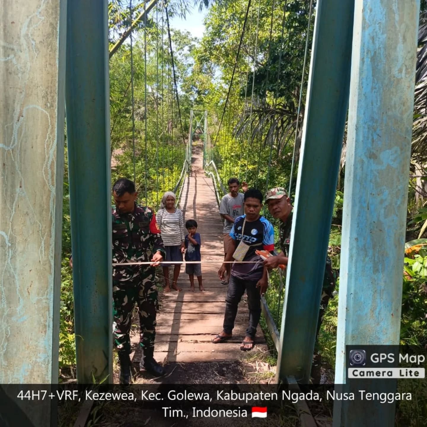 Ngada – Pada Kamis, 4 Desember 2025, Danpos Golewa Selatan, Sertu Kristoforus R. Modo, bersama anggota timnya, Kopda Johansyah dan Pratu Aris Toda, melakukan survey awal untuk rencana pembangunan Jembatan Gantung di Desa Nirmala, tepatnya di RT 05, RW 02, Dusun Niba, Kecamatan Golewa Selatan, Kabupaten Ngada.