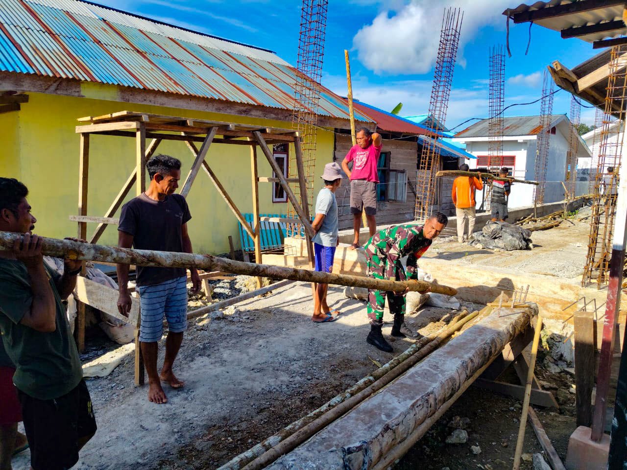 Tak Pernah Lelah Babainsa Desa Goeng Koramil 1512-01/Weda Bersama Warga Gotong Royong Angkat Material Untuk Pembangunan Gereja