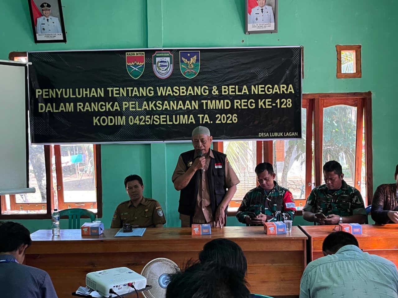Seluma, Rabu 29 April 2026 — Satgas TMMD ke-128 Kodim 0425/Seluma kembali melaksanakan kegiatan non-fisik berupa penyuluhan Wawasan Kebangsaan (Wasbang) dan Bela Negara kepada masyarakat Desa Lubuk Lagan, Kecamatan Talo Kecil. Kegiatan ini bertujuan untuk memperkuat rasa nasionalisme serta meningkatkan kesadaran masyarakat akan pentingnya menjaga keutuhan bangsa.