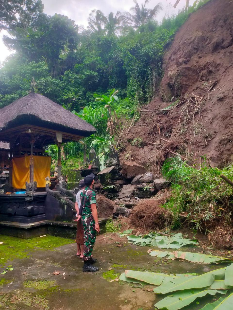 “Tebing setinggi sekitar 15 meter yang ada di area pura mungkin telah tergerus oleh air hujan dan mengakibatkan longsor,” jelasnya. Meskipun tidak ada korban jiwa, material longsoran berupa tanah dan ranting pohon menutup sebagian area pura serta jalan utama di sekitarnya.
