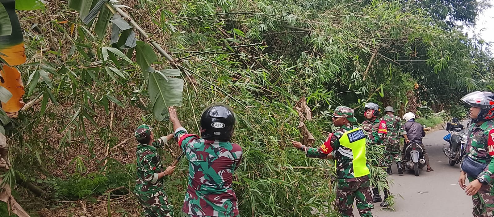 Selama patroli, Babinsa menemukan pohon besar tumbang yang menghalangi jalan, berpotensi menyebabkan kecelakaan bagi pengguna jalan. Dengan sigap, ia melakukan evakuasi dan membersihkan area tersebut agar arus lalu lintas dapat kembali normal. Tindakan ini mencerminkan komitmen TNI AD dalam menjaga keselamatan masyarakat, terutama di saat-saat kritis seperti ini.