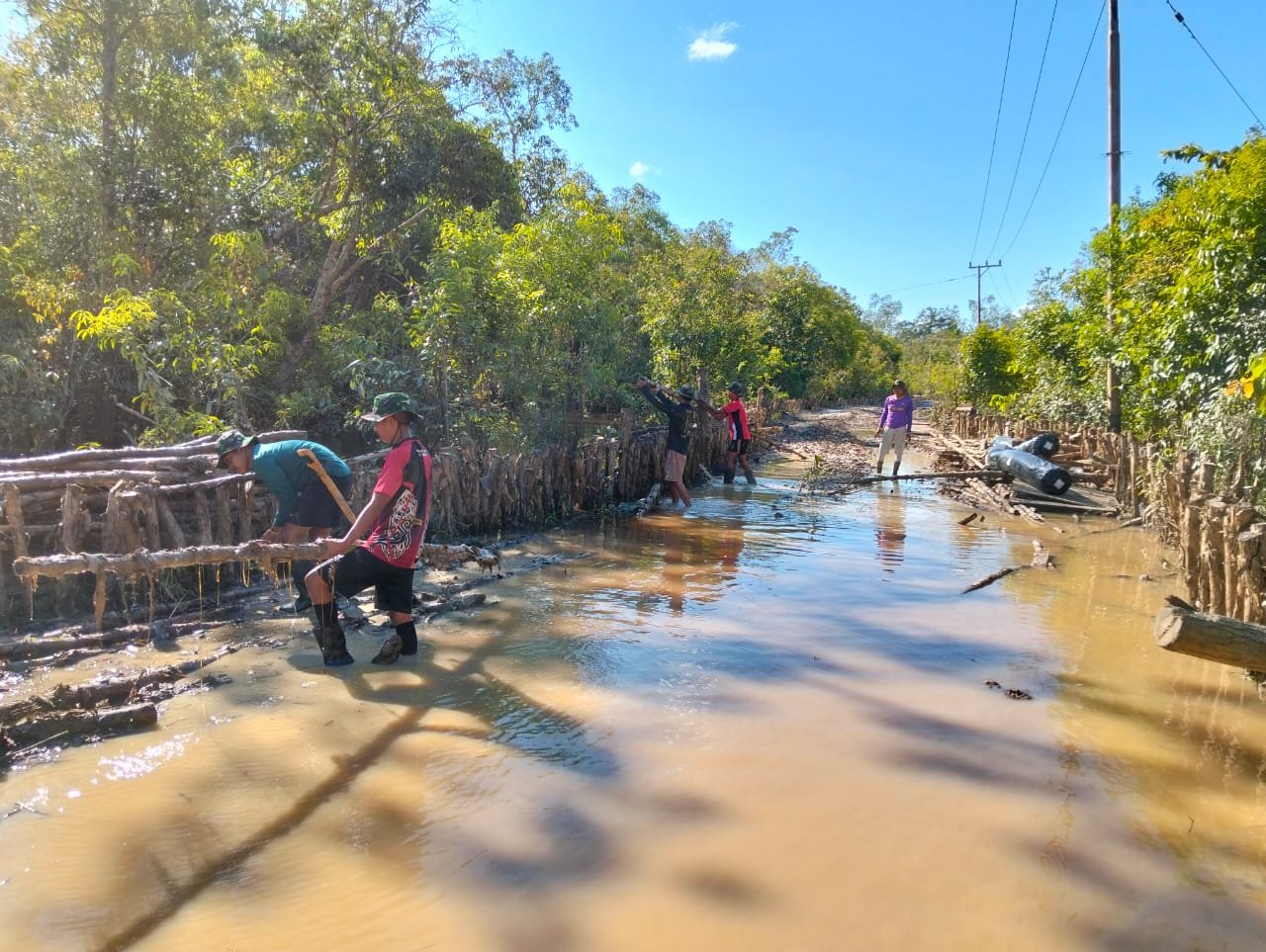 Barito Selatan – Meskipun dalam kondisi medan yang sulit saat ini, personel Satgas TMMD Reg ke 124 tetap bersemangat untuk melanjutkan pembangunan jalan melalui pemasangan Kayu cerucuk, Bertempat di Jalan Desa Talio, Kecamatan Karau Kuala, Kabupaten Barito Selatan, Pada hari Minggu (18/05/2025)