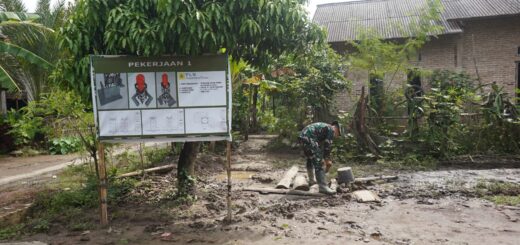 Tentara dan Warga Gotong Royong Angkut Material Pengecoran Jalan Desa Talio