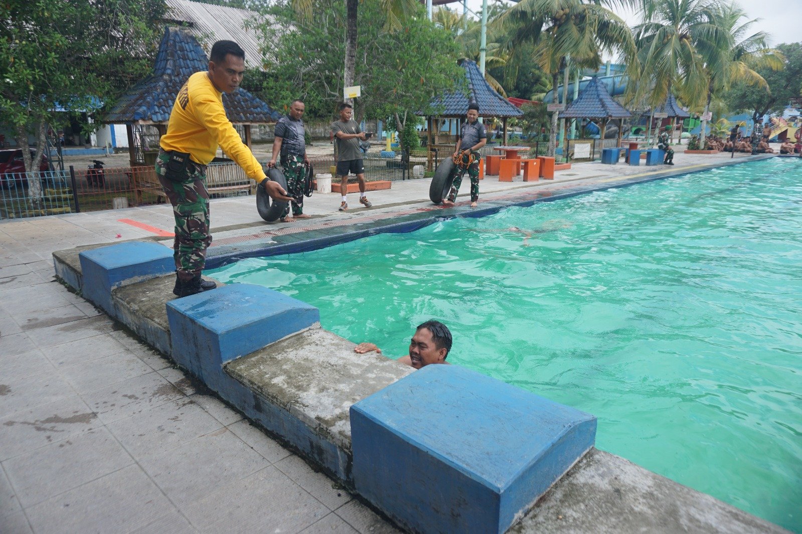Perwira Seksi Personil (Pasipers) Kodim Kapten Inf Sahroni selaku Koordinator Latihan menyampaikan, renang dasar 50 meter ini merupakan salah satu keterampilan dan ketangkasan yang harus dimiliki oleh setiap prajurit,” terangnya.