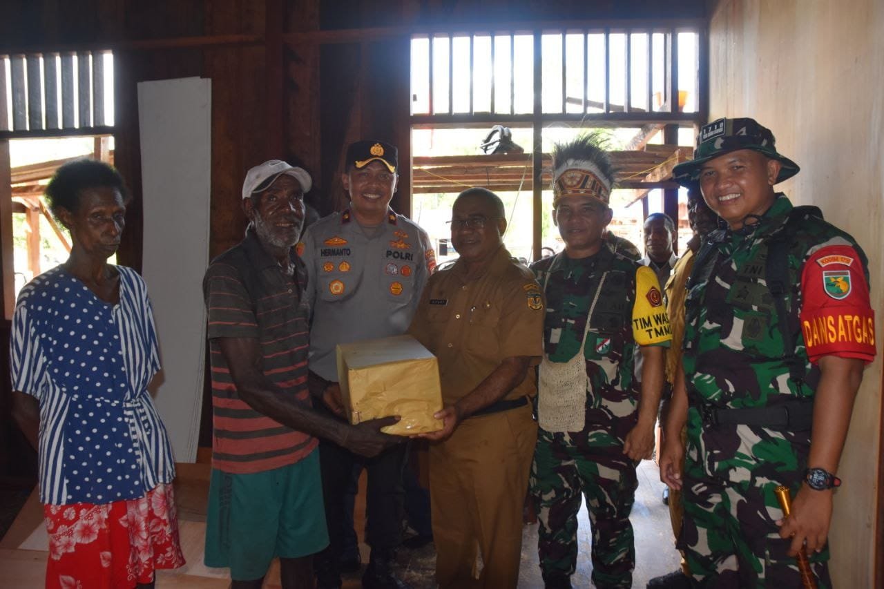 Tim Wasev TNI AD Serahkan Bantuan Pertanian dan Sembako kepada Warga Kampung Pigapu