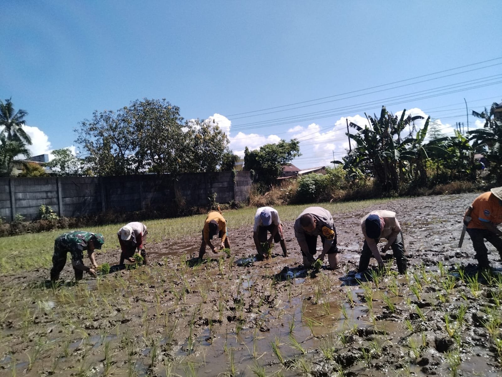 “Ini sudah merupakan tugas kami sebagai aparatur kewilayahan membantu para petani dalam hal pertanian, seperti kegiatan tanam padi yang sedang dikerjakan, ini merupakan wujud kemanunggalan TNI-Polri dengan Rakyat,” ujarnya.