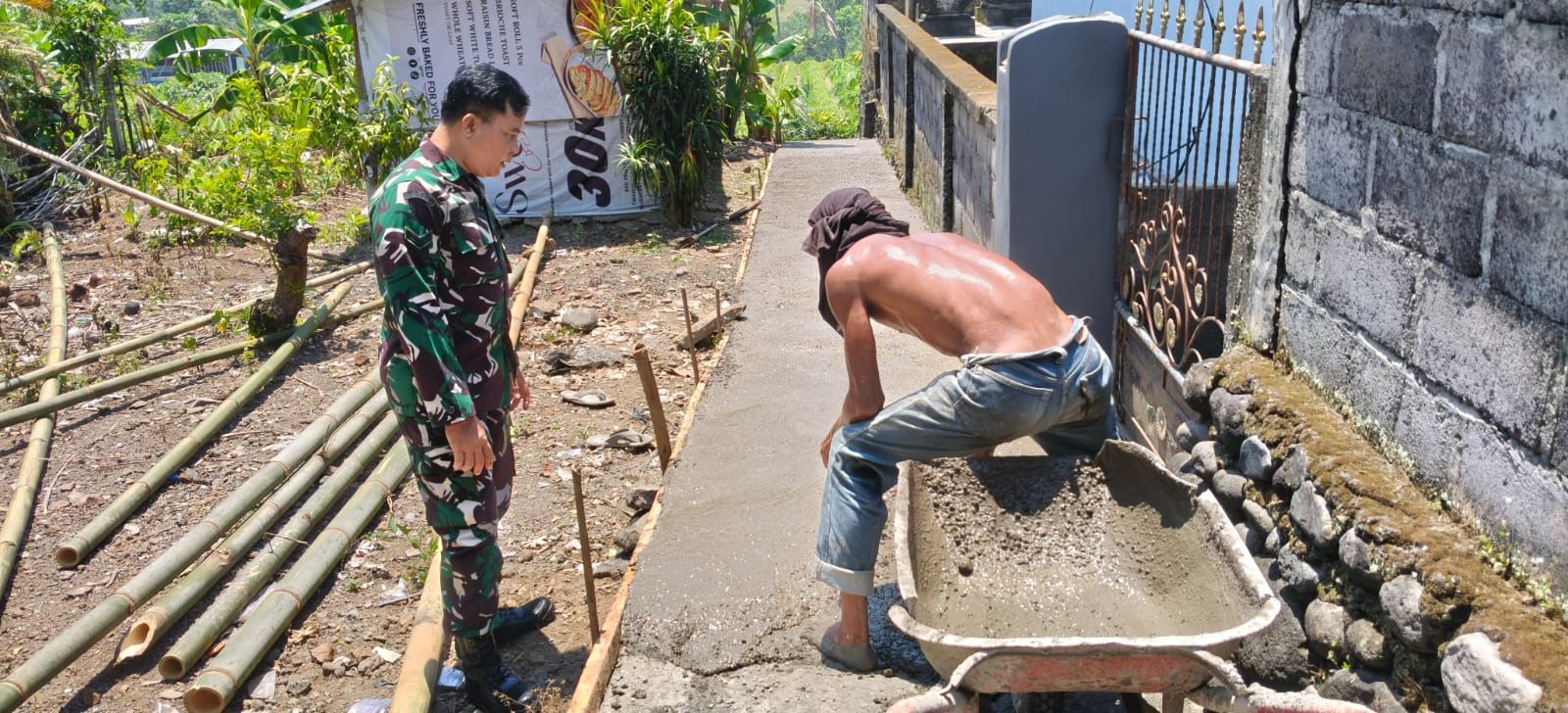 Tinjau Perbaikan Gang Di Dusun Mengguna, Babinsa Tihingan Tekankan Kualitas Pekerjaan