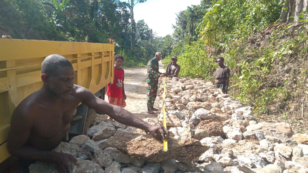 Kaimana – Untuk mendukung percepatan pembangunan jembatan, Satuan Tugas (Satgas) TMMD 127 Kodim 1804/Kaimana kembali melaksanakan pengiriman material batu ke Kampung Marsi pada tanggal 28 Februari 2026. Pengiriman material ini dipimpin oleh Sertu Daniel Ndiken, yang menjabat sebagai Babinsa Kampung Marsi. Proses pengangkutan material dilakukan secara bertahap untuk memastikan distribusi berlangsung efektif dan tepat sasaran. Kegiatan tersebut melibatkan dua personel TNI AD, delapan warga masyarakat, serta satu anggota Komcad. Kolaborasi ini mencerminkan kemanunggalan antara TNI dan masyarakat dalam setiap tahap pembangunan. Saat ini, progres pembangunan jembatan telah mencapai 32 persen. Dengan terus didatangkannya material, diharapkan tahapan berikutnya dapat segera dilaksanakan untuk mempercepat proses penyelesaian. Satgas TMMD 127 Kodim 1804/Kaimana berkomitmen untuk mengoptimalkan setiap tahapan pembangunan agar jembatan di Kampung Marsi segera dapat digunakan oleh masyarakat sebagai akses utama penghubung antar wilayah.