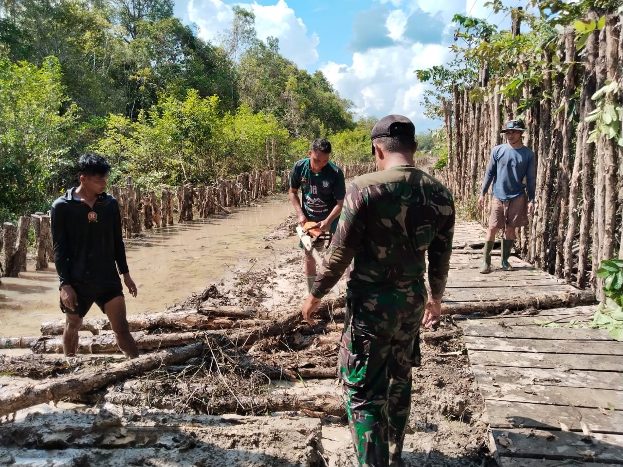 Buntok – Salah satu sasaran kegiatan TMMD Ke-124 Kodim 1012/Buntok yaitu pembukaan jalan menghadapi tantangan lahan berupa tanah gambut. Kondisi tanah yang lunak ini mengharuskan Satgas TMMD memasang cerucuk kayu sebagai penyangga agar badan jalan dapat menahan beban kendaraan dan aktivitas pembangunan.