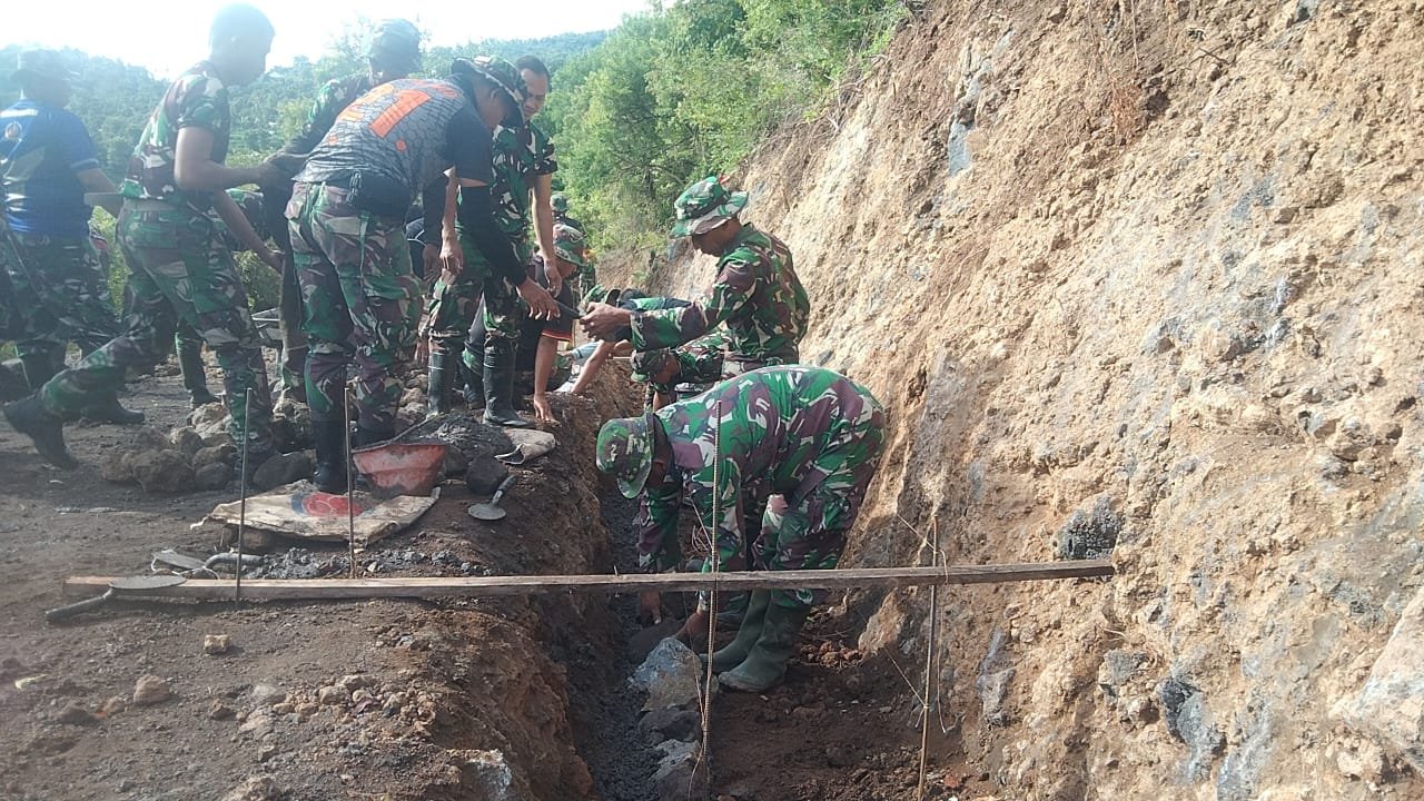 TMMD ke-124 Kodim 1609/Buleleng Bangun Drainase Sepanjang 501 Meter di Desa Depeha