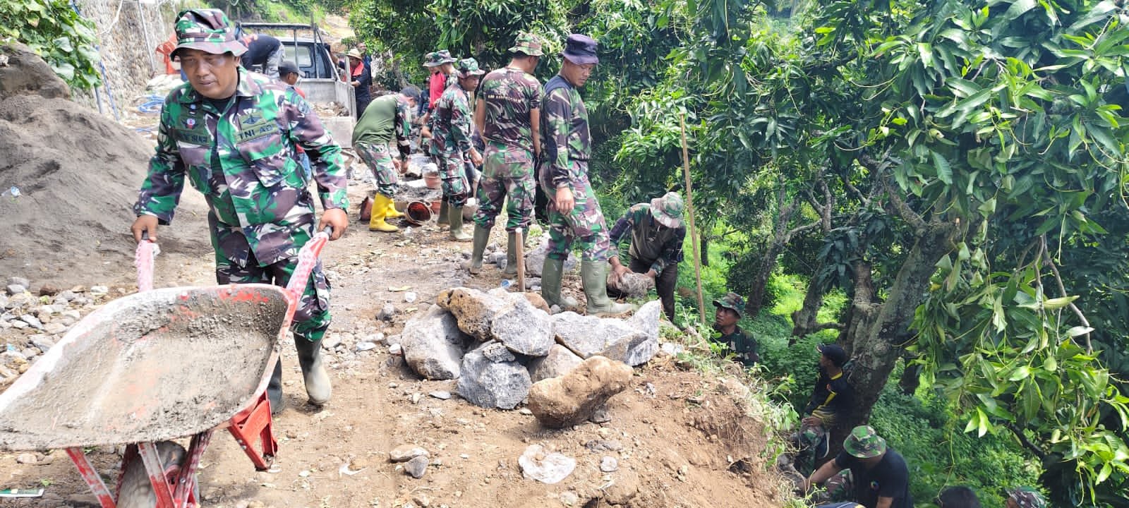 Dan SSK Lettu Inf Chris Pelris Patah menyampaikan bahwa kendati medan cukup menantang, kolaborasi antara personel TNI dan masyarakat menjadi kunci utama dalam kelancaran pekerjaan.