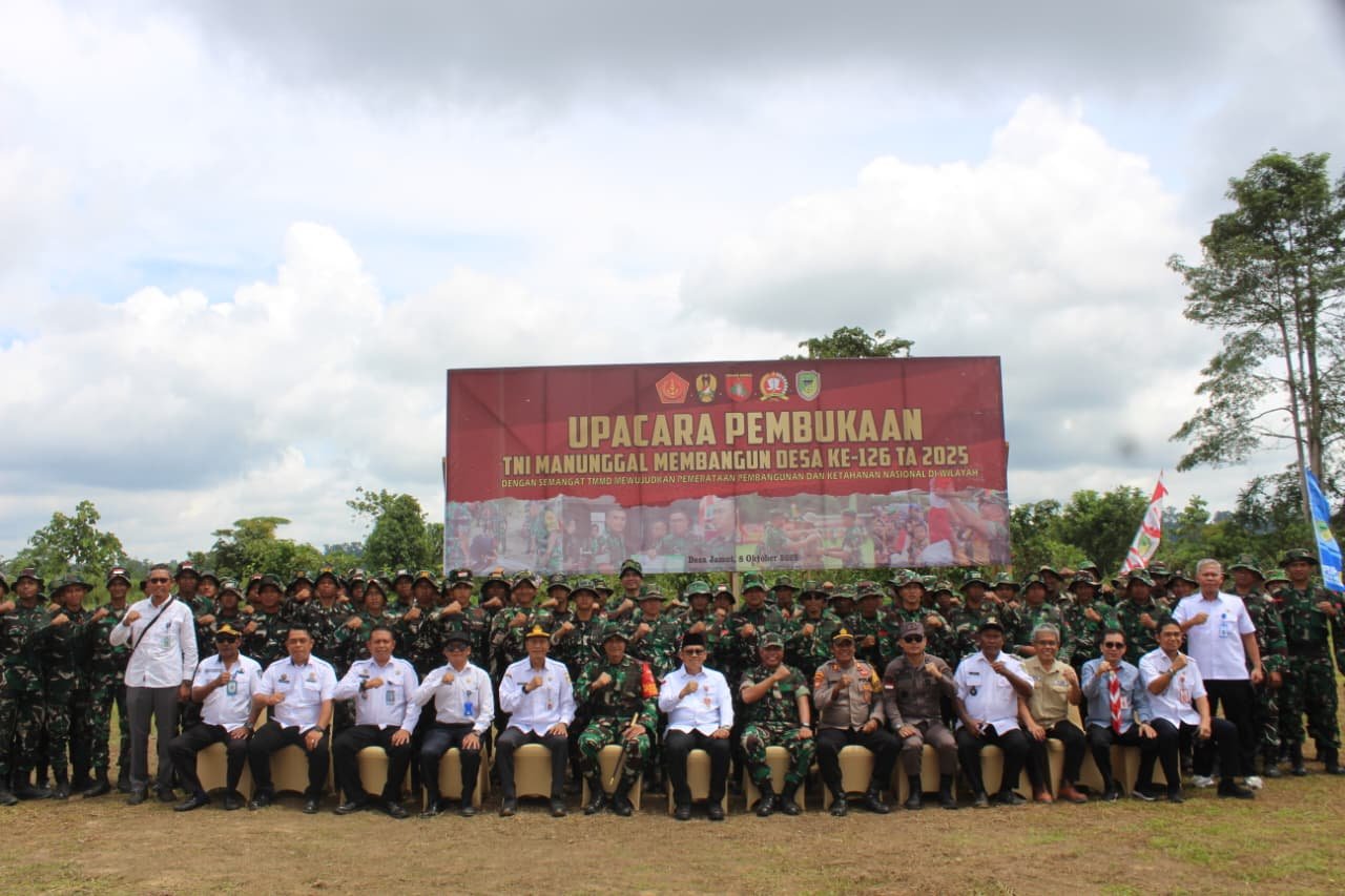 Desa Jamut Kec. Teweh Timur, Kab.Barito Utara— Kodim 1013/Muara Teweh Kembali menggelar Kegiatan TNI Manunggal Membangun Desa TMMD Reguler ke-126 Tahun 2025 yang secara resmi dibuka oleh Pj. Bupati Barito Utara Indra Gunawan SE., MPA, pada hari Rabu 08 Oktober 2025.
