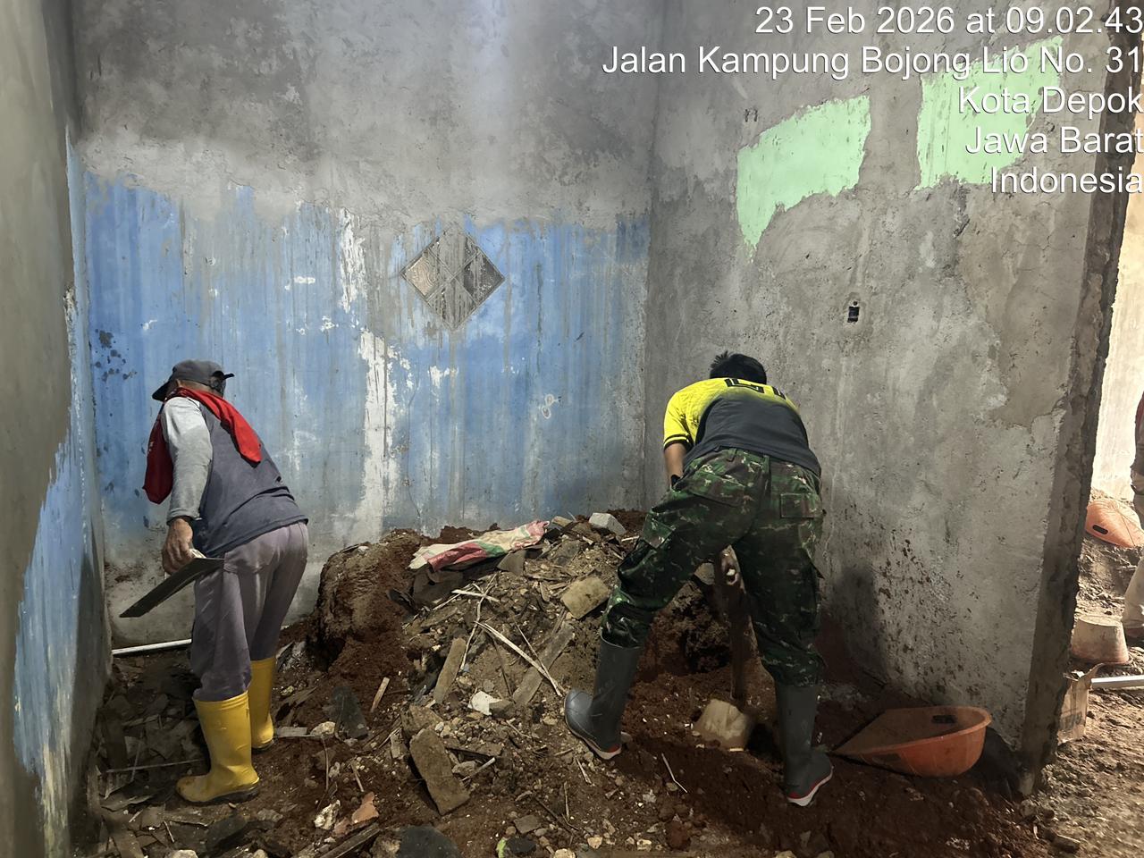 Depok – TNI kembali menunjukkan kepeduliannya terhadap kesejahteraan masyarakat melalui program Renovasi Rumah Tidak Layak Huni (RTLH) dalam rangka TMMD Ke-127 tahun anggaran 2026 yang dilaksanakan oleh Kodim 0508/Depok. Salah satu penerima manfaat dari program ini adalah Ujang Fadilah, seorang warga yang tinggal di Kelurahan Sukamaju, Kecamatan Cilodong, yang saat ini rumahnya sedang direhabilitasi.