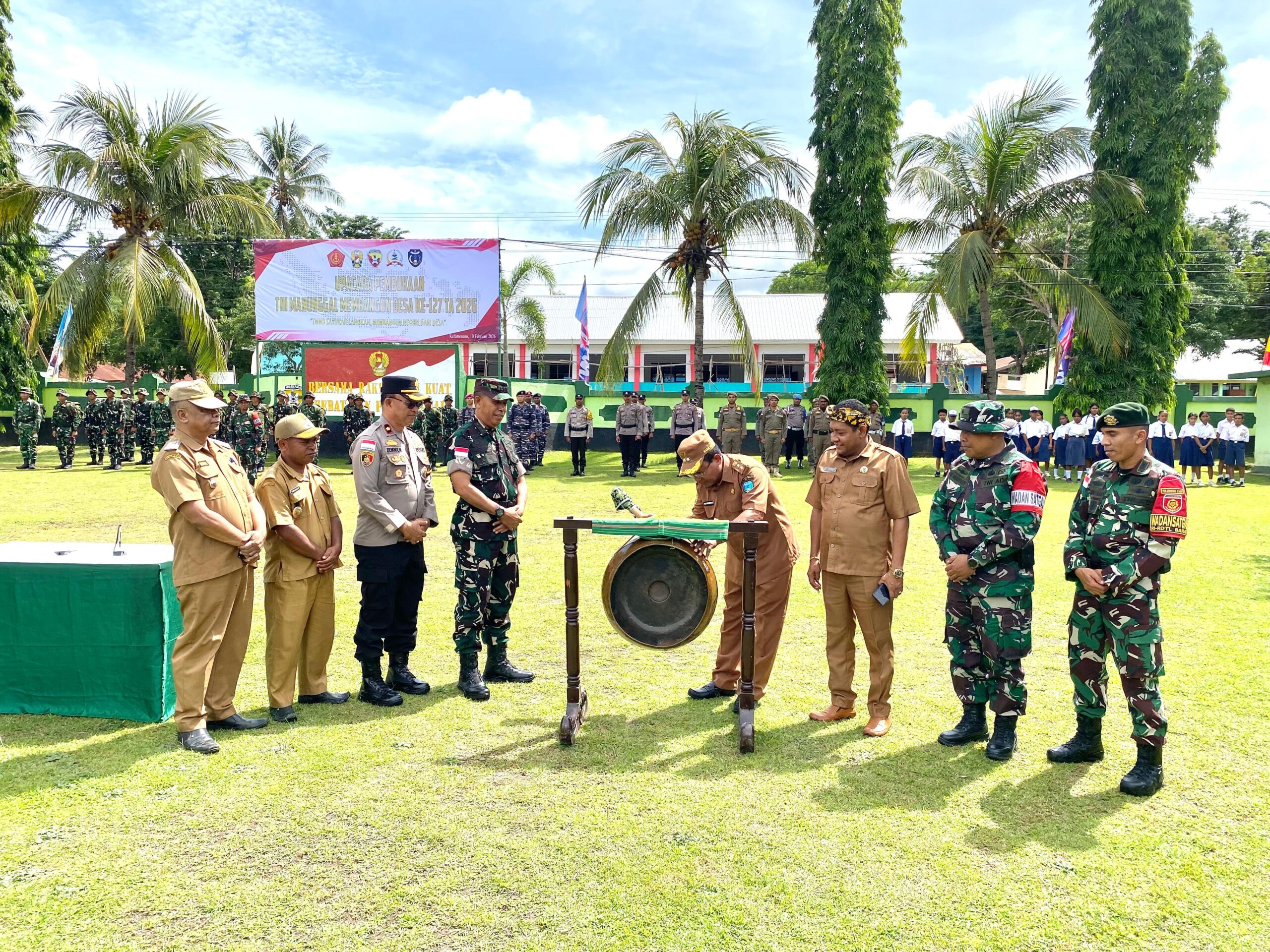 Upacara pembukaan dimulai dengan laporan kegiatan TMMD yang disampaikan oleh Danramil 1618-01/Miotim, Mayor Inf Ery N. M. Ninu, S.Pd. Selanjutnya dilakukan penandatanganan naskah program serta penyerahan alat kerja kepada peserta TMMD. Semua rangkaian kegiatan ini menandakan kesiapan seluruh elemen dalam melaksanakan program pembangunan desa.