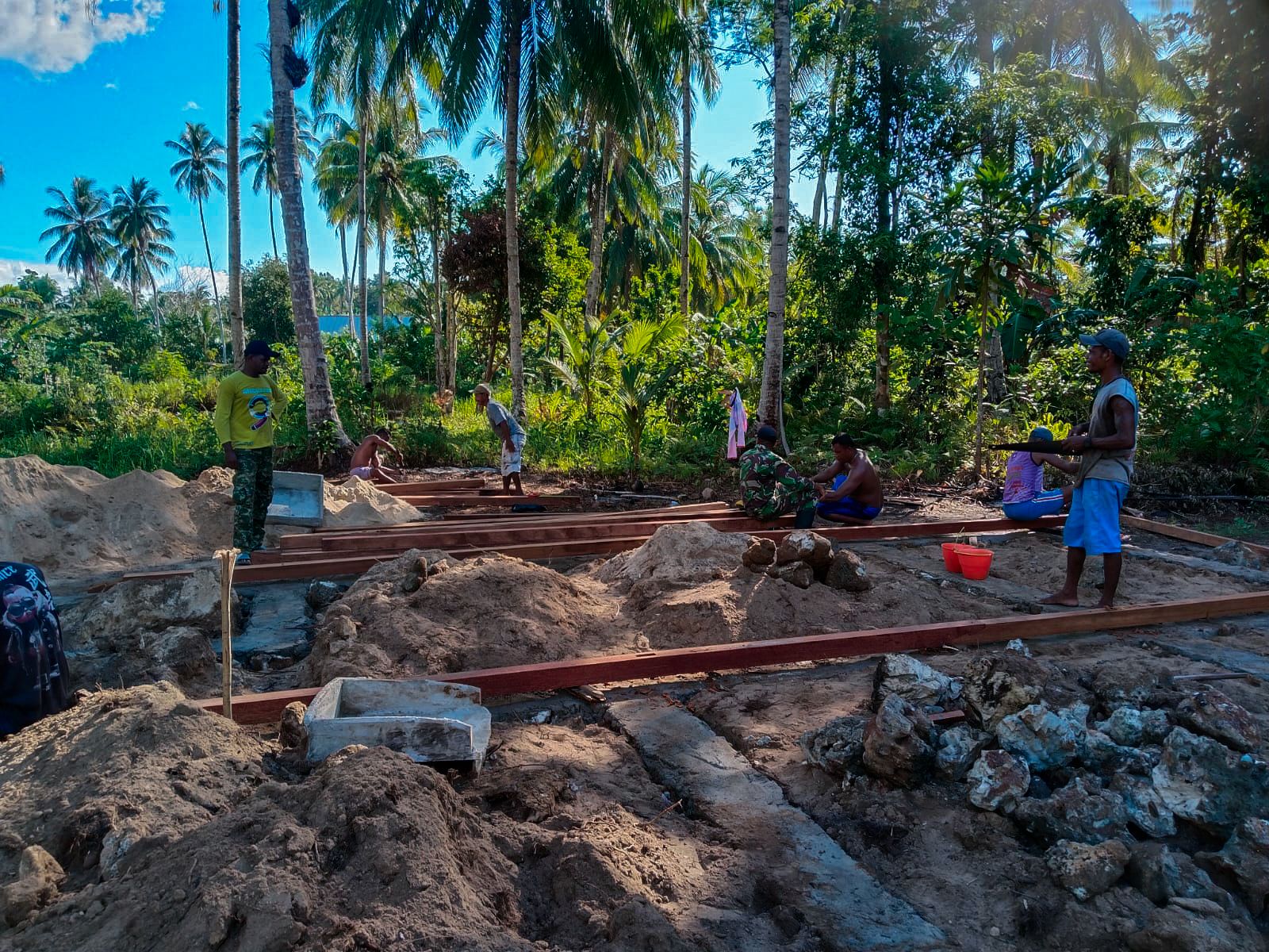 Anggota Satgas TMMD bekerja sama dengan masyarakat setempat dalam melakukan berbagai tahapan, mulai dari persiapan lahan hingga pembangunan struktur dasar rumah. Kerja sama ini menunjukkan semangat gotong royong yang kuat antara TNI dan masyarakat, menciptakan solidaritas yang nyata.