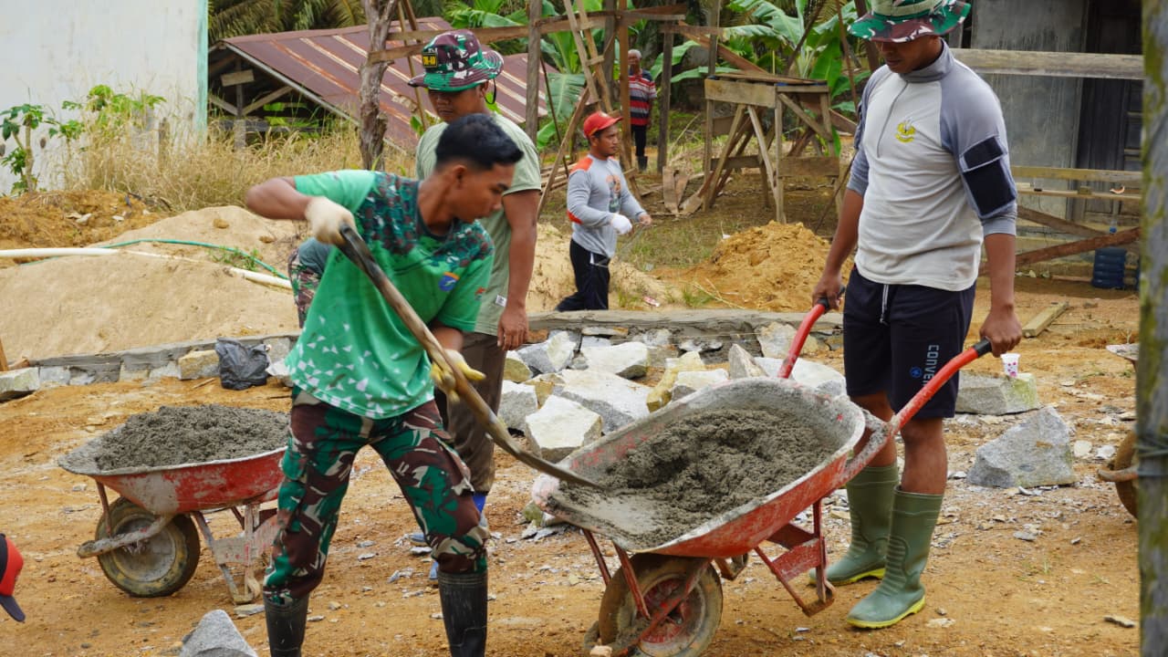 Antusiasme warga juga sangat tinggi, terlihat dari keterlibatan mereka yang aktif membantu dalam berbagai pekerjaan di lapangan. Kolaborasi antara TNI dan masyarakat ini diharapkan dapat mempercepat pencapaian target pembangunan.